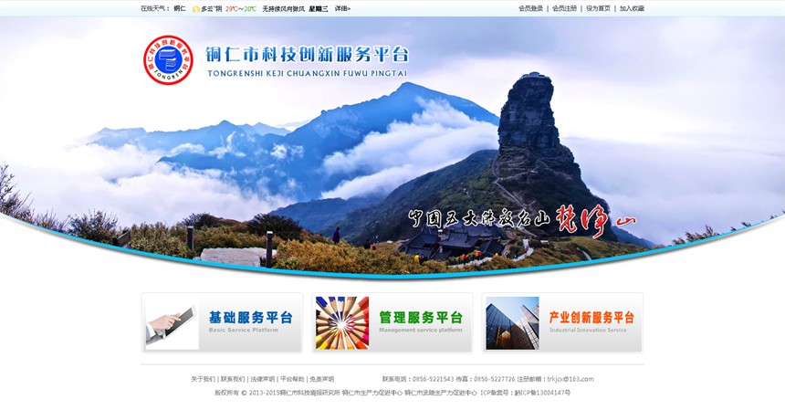 铜仁市科技创新服务平台由铜仁市生产力促进中心主办,下设基础服务平台:科技文献服务平台、科技信息服务平台、环境及政策服务平台、科技在线培训服务平台。管理服务平台:铜仁市科技项目申报平台、铜仁市科技成果评审平台、铜仁市知识产权服务平台。产业创新服务平台:锰行业科技创新服务平台、精细化工科技创新服务平台、科技中介和人才团队服务系统、会员联盟(企业与产品信息)、铜仁市技术转移服务平台、科技投融资服务系统。